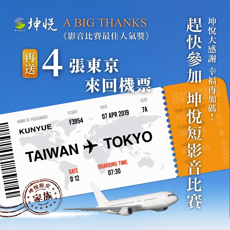 加碼「最佳人氣獎」再送4張東京來回機票
